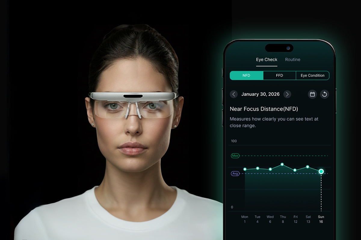 Eyeary identifies your most comfortable clarity range through app-based measurement. It then alternates focus between near and far distances, naturally engaging your focus-adjustment muscles.